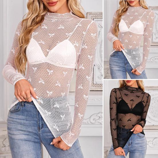 Elegantní krajkový design: Pozvedněte svůj styl tímto dámským síťovaným topem s dlouhým rukávem, který zdobí složitá krajková výšivka vyzařující šik sofistikovanost.. Květinové vzory dodávají nádech ženskosti a zajistí, že vyniknete v jakémkoli davu.
