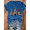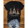 Letní dámská trička s krátkým rukávem, módní, ležérní, s 3D potiskem vánočního stromku a kulatým výstřihem