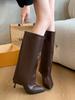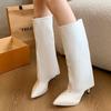 Women High Boots Pointed Toe Leather Shoes Winter Designer Mid Heels Party Shoes Women 2024 Trend Snow Boots Elegant Mujer Botas