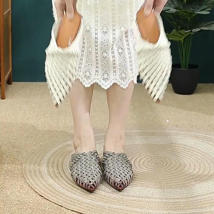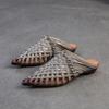 Johnature Ručně vyráběné tkaní Pantofle se špičatou špičkou na nízkém podpatku Prodyšná móda Dámská obuv z pravé kůže