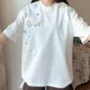 Dámské letní výšivka literární krátký rukáv tričko volný ležérní pulovr top