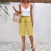 Dámské pouliční ležérní bermudy s předními kapsami, elastickým pasem a šňůrkou na stažení, letní jednobarevné všestranné kalhoty ke kolenům