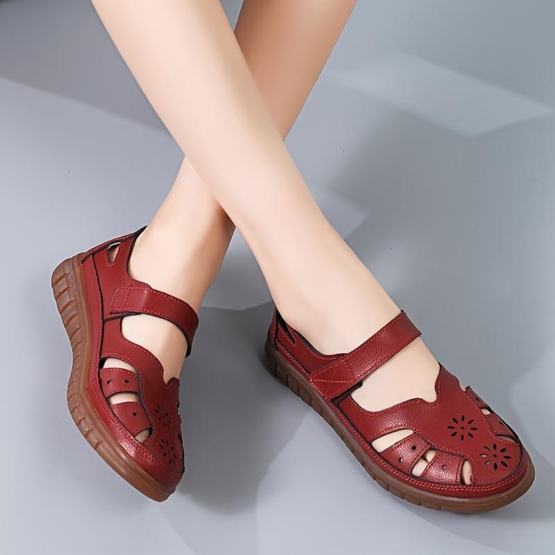 Women's Leather Hollow Sandals Breathable Summer Shoes Comfortable Nurse Shoes White Sandals Mom Sandals Large Size