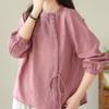 Dámská košile Bavlněná Lněná Literární košile Šikmá Jednobarevná Ležérní košile s klopou