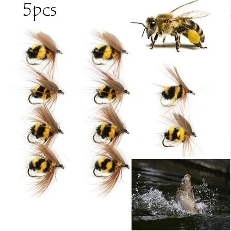 5pcs Simulation Bee Hook Fly Bait Meal Baitiao Makouluya Bait Water Floating Fly Hook