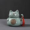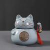 Keramická dóza na čaj Kočka pro štěstí – Dóza se vzduchotěsným víčkem s glazurou s ledovou kresbou pro skladování čaje, cukroví a svačin