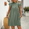 VEZFAA Women's Fashion Summer Spring Solid Color Print Short Sleeve Half Turtleneck Loose Waistline Casual Dresses