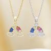 Beating heart rainbow necklace women's collarbone chain set with colored diamonds ins niche design high sense versatile