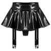 Dámská lakovaná kožená volánová sukně, vestavěné tanga, podvazkové spony, mini klubové oblečení