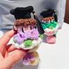 Promoční klobouk, doktorka, chlapeček, dívka, zvířecí kytice, škola, ručně háčkovaná, vlněná háčkovaná kytice, látková dekorace