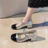 Weiwei girl 220-1 square head flat bottom Mary Jane shoes girl word with light mouth color matching fairy style low heel single shoes