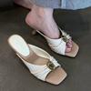 Hrubý podpatek Korejská verze jednoduchého setu prstů temperamentní niche designérské cool pantofle ženy
