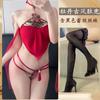 Fun Underwear Sexy Antique Peony Embroidery Neck Belly Pocket Strap Bandage Hollow Uniform Set