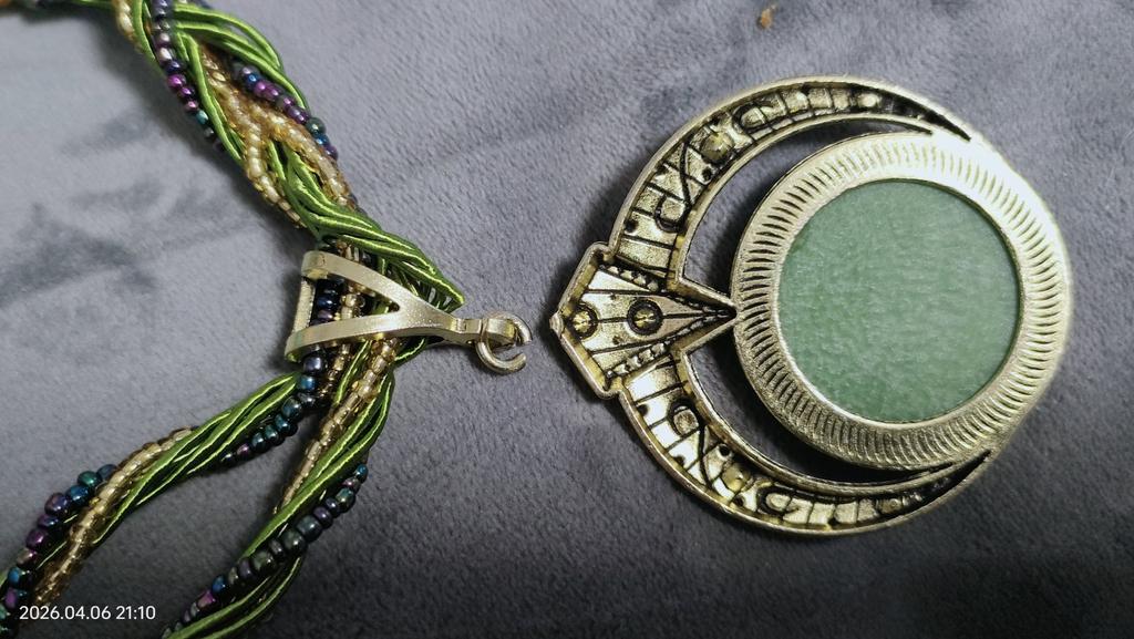 Náhrdelník je pěkný, jen je napsáno, že vsadka je přírodní kámen, a já jsem o něm dál nečetla, ale ve skutečnosti je to plast a to se mi nelíbilo, tím spíš, že náhrdelník je ruční práce.