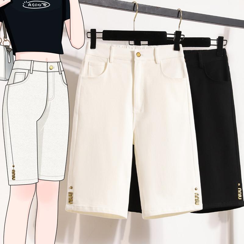 Plus Size Women Shorts Pants Summer Loose Jeans Short Basic Harem High Waist Solid Pants Elastic Waist