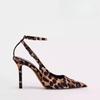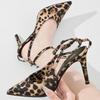 2025 Nové sexy temperamentní seniorské smyslné jemné sandály na podpatku špičaté saténové s leopardím potiskem vysoké podpatky