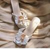 Sweet flower one word slippers female summer outside wear 2025 new absolute beauty temperament fine heel sandals slippers