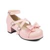 Plus Size Summer Lolita Chunky Heel Single Shoes With Bow and Crossed Straps for Women