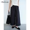 Korean Fashion Spring Summer Women Wide Leg Pants High Waist Black White Basic Cotton Capris Casual Loose Ruffles Trousers