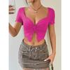 New Design Sense Chest Twist Pleated Deep V Short Top