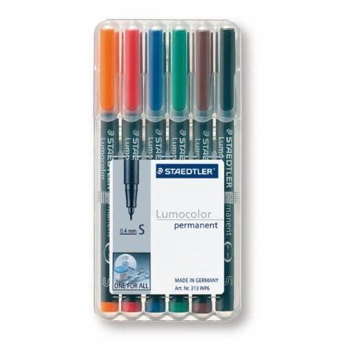 Staedtler Lumocolor Boîte de 6 feutres universels permanents Couleurs assorties Pointe 0,4 mm