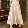 Francouzská růžová midi sukně s květinovým vzorem pro ženy s vysokým pasem a zeštíhlujícím efektem Univerzální a niche temperament V létě Dlouhá sukně
