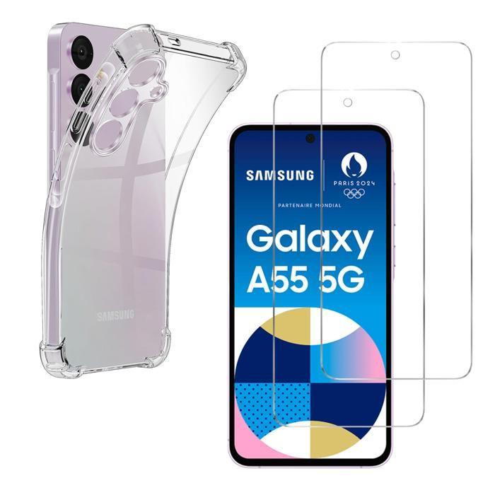 Coque antichoc - Phonillico® - Samsung Galaxy A55 5G - Silicone souple - 2 Verres Trempé - Protection renforcée