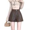 Dámské PU kožené šortky podzimní a zimní nové s vysokým pasem a zeštíhlující svrchní oděv volné široké nohavice áčkového střihu ležérní legíny