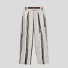INCERUN Men Zipper Waist Striped Print Casual Loose Long Wide Legs Pants Trousers