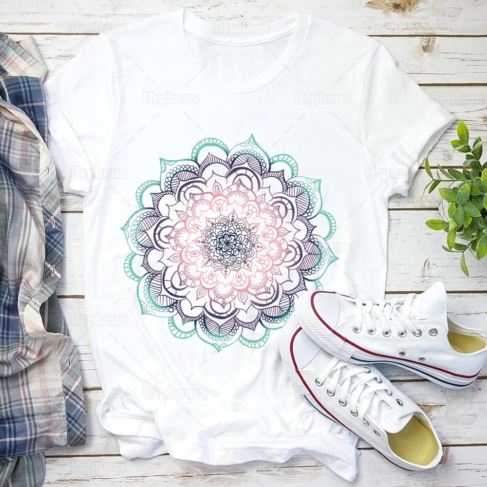 Mandala 100% bavlněné tričko dámské unisexdala umění geometrické tričko buddhismus jógová trička unisexdala letní top trička unisex