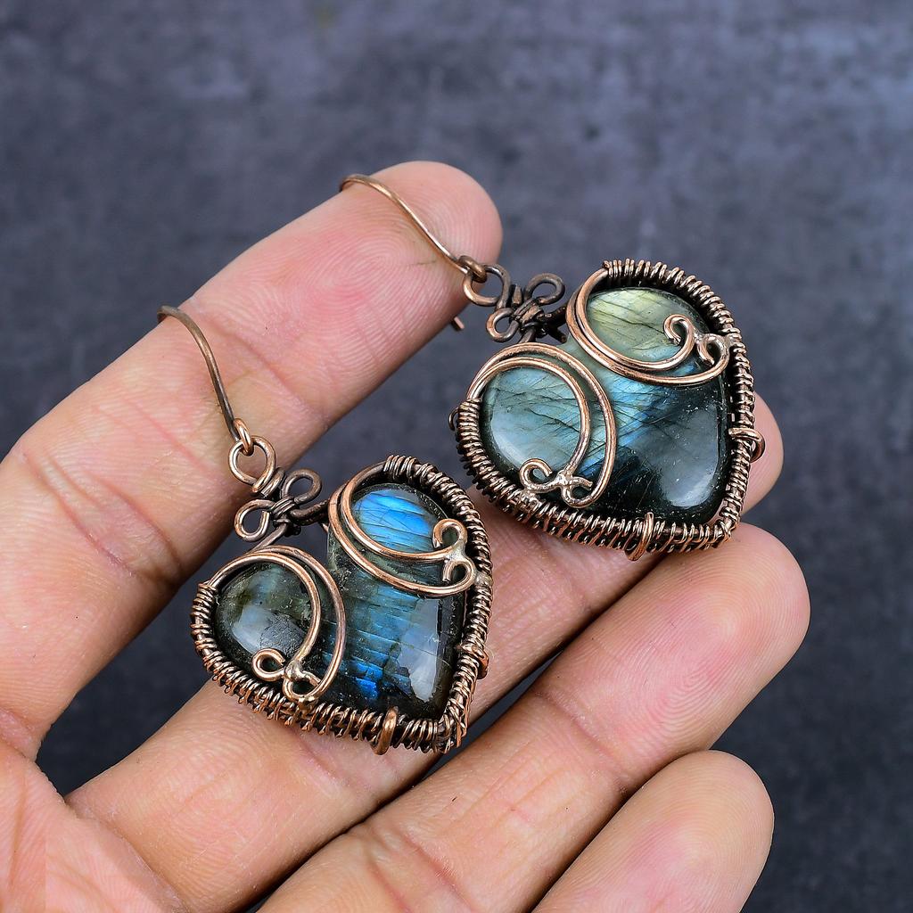 Natural Labradorite Gemstone Copper Wire Wrap Jewelry Earring 2.21" s1z87