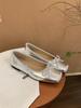 Francouzský čtvercový špičatý plochá podrážka mělké nártové boty dámské 2025 jaro a léto nové vílí styl mašle měkká podrážka Mary Jane dámské boty