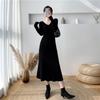Všestranné pletené šaty s výstřihem do V, ke kolenům, slim střihu pro ženy - Podzimní a zimní kolekce.