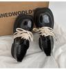 Černé módní všestranné šněrovací malé kožené boty pro dámské léto 2025 nové na silné podrážce zvyšující výšku design britského stylu jednokrátké boty