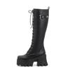 Robustní kozačky nad koleno Dámské platformové silné punkové podpatky PU kůže Černé retro zimní boty Dlouhé boty Dámské šněrovací Vodotěsné