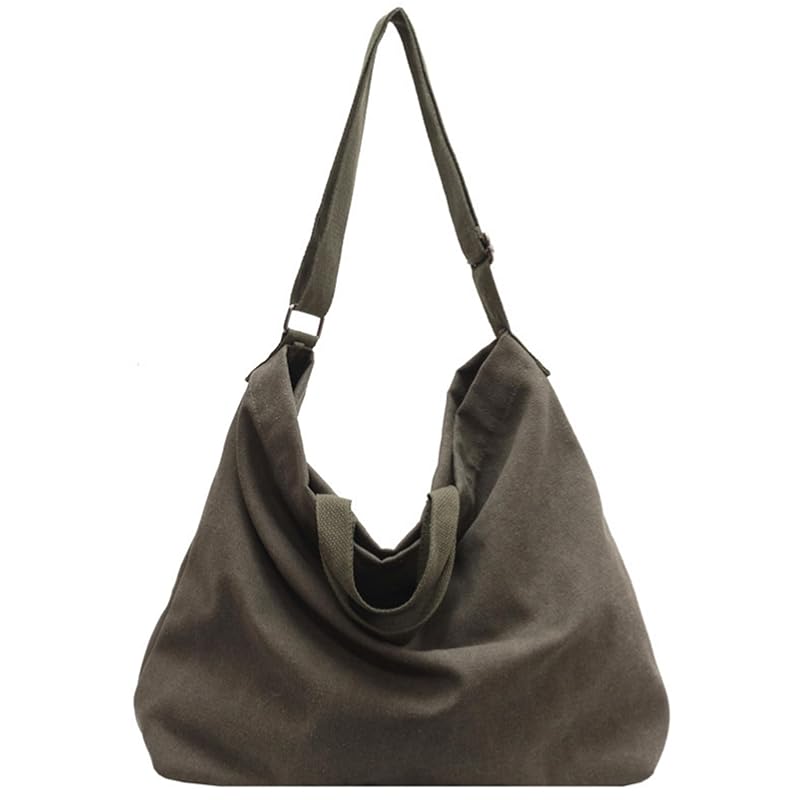 [Aquamie] canvas tote bag Made of cloth Crossbody with handle simple Plain color 2way large capacity commute Commuting to school (dark green)