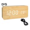Dřevěný budík s velkým LED displejem Snadno čitelný Stmívatelný Odložení Digitální budík s ukazatelem teploty