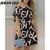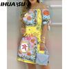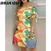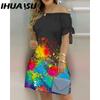IHUASU Women Fashion Off Shoulder Dress Short Sleeve Bow Tie Print Dresses Summer Beach Dresses Plus Size