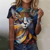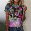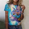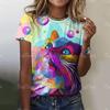 Women's T Shirts 3d Gradient Cat Print Tshirts Y2k Oversized Female Clothing Aesthetics Tees Funny Fashion Short Sleeve Tops