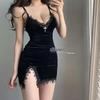 Americké Sametové Krajkové Nízkostřihové Sexy Letní Šaty s Vycpávkami