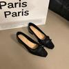 Thick heel small fragrant wind patent leather single shoes women's 2024 new French splicing bow evening ladyshoes