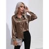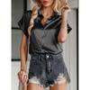 Jarní a podzimní dámská košile jednobarevná saténová halenka s krátkým rukávem, knoflík přes rameno