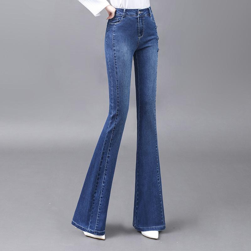 2023 Podzim Dámské Džíny s Vysokým Pasem Slim Fit Zvonové – Délka ke Kotníkům a Elastické