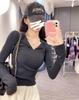 Milk Apricot V-Neck Knitted Sweater for Women - Spring Slim Fit 2025, Sweet & Spicy Polo Neck, Long-Sleeved Top, Bottoming Shirt