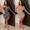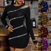 This elegant one-shoulder dress combines European and American styles with a touch of glamour. Made from luxurious artificial silk material, it offers a sleek and comfortable fit. Adorned with sparkling diamonds, this dress effortlessly enhances your allure, making it perfect for special occasions. The use of milk silk for the fur detail adds a soft and sophisticated touch, ensuring you stand out with a unique blend of modern fashion and timeless elegance.