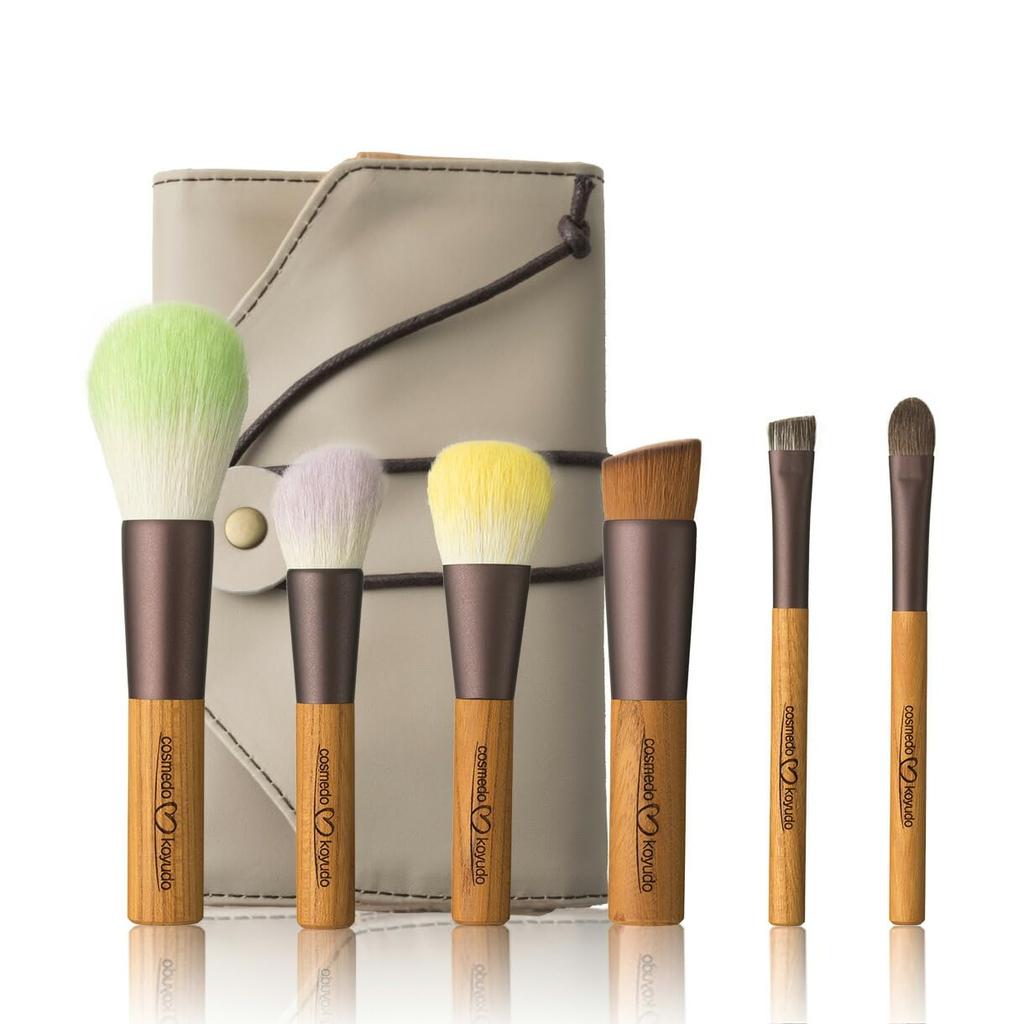 x Kumano Brush Makeup Brush Set of 6 Case Natural Taste Series [Cosmedo Koyudo] + NG-067AC