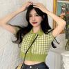 Single-breasted Short Plaid Polo Neck Cardigan Top Women's Summer Small Fresh Short Sleeve Knitted T-shirt Looks Thin