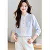 Stylish Korean Hong Kong Blue Long-Sleeve Versatile Top for Women