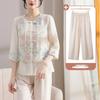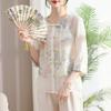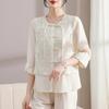 Hedvábný top s výšivkou, módní košile na knoflíky v čínském stylu