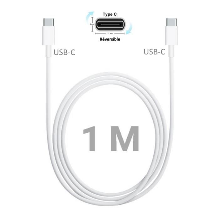 Câble USB-C vers USB-C - ACCE2S - Samsung Galaxy A50 - 100 cm - Blanc - Quick Charge